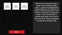 Just an update to show some screenshots from the game. The Info menu, the front view with UI, the back view, and the new door choice mechanic...